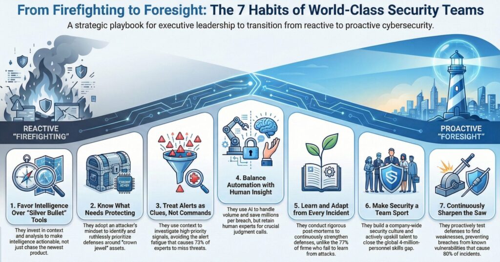 The focus is always on understanding the organization’s threat landscape, not chasing the newest gadget. They make intelligence actionable by sharing it across teams, training analysts to question and connect dots, and embedding it into decision-making. As a result, effective teams discover incidents faster, contain threats earlier, and spend more time on prevention than on cleanup.